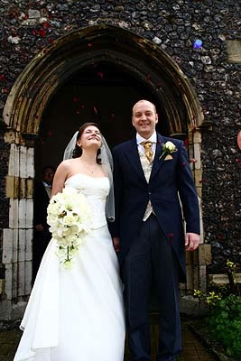 Claire enjoys a shower of confetti as she exits the centuries-old English