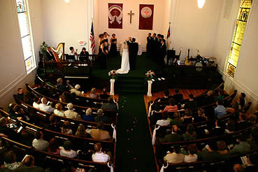 The view from above the ceremony in an old New England congregational