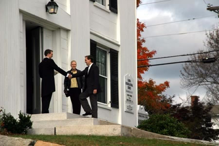 Alyssa and Max exit the church. |