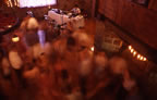 People moving on the dancefloor, in the light of Sarah's fireplace of